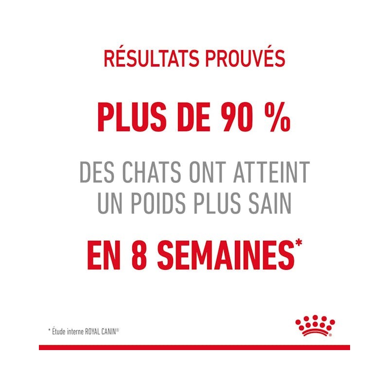 La formule LIGHT 40 riche en fibres et en psyllium, permet de réduire de 17% les calories consommées spontanément par le chat tout en satisfaisant son appétit (comparé a un aliment haut de gamme modéré en calories - Etude Royal Canin 2006). Efficacité prouvée quand l’aliment LIGHT 40 est utilisé exclusivement).