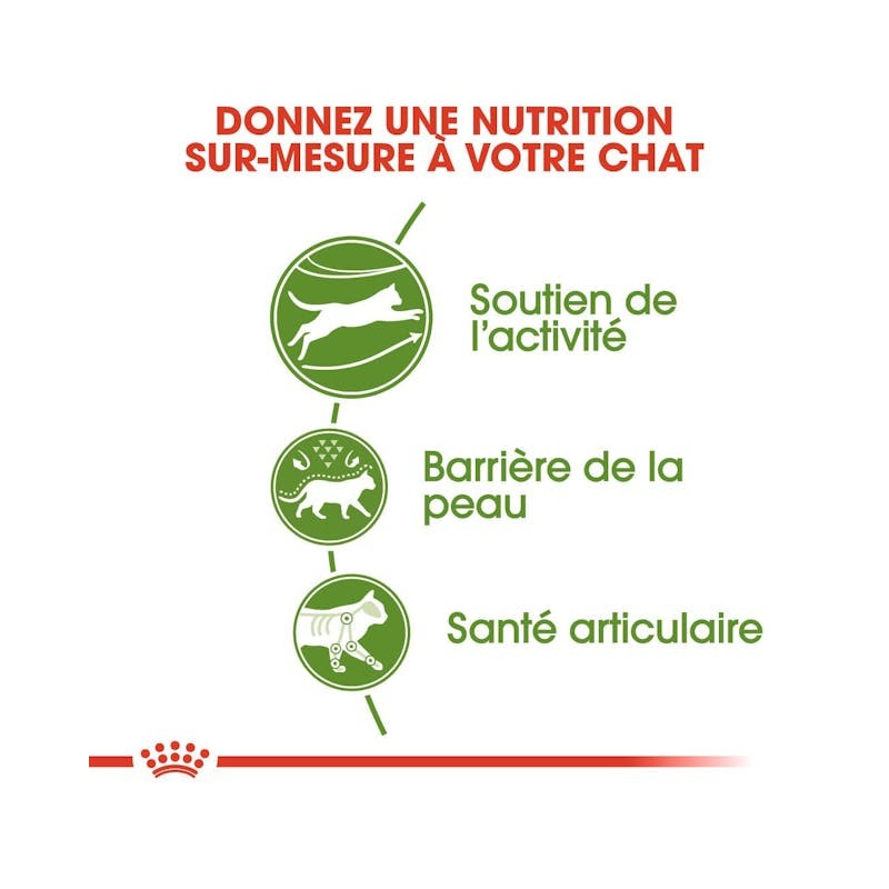 Garantit un apport énergétique optimal au chat qui accède à l’extérieur et qui se dépense régulièrement.