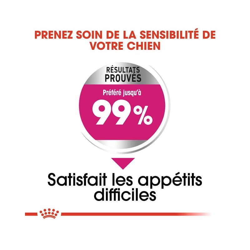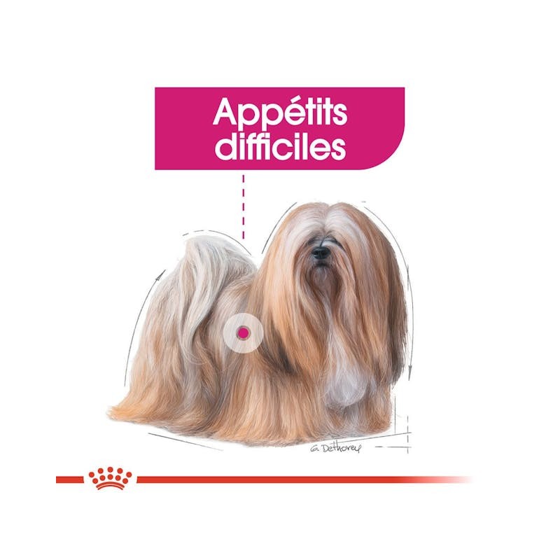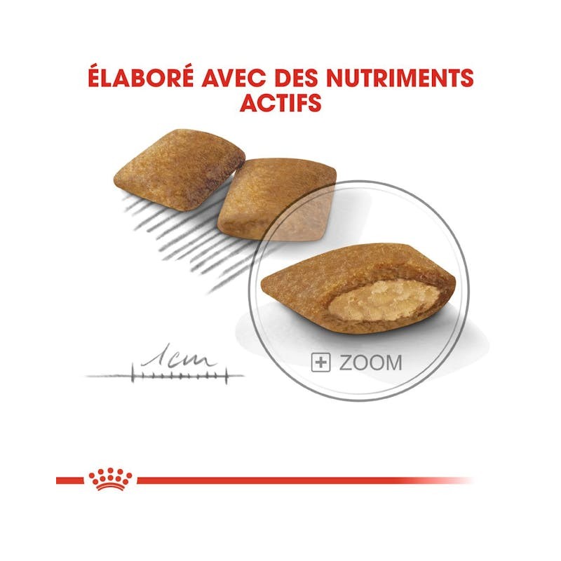 Satisfait l’appétit difficile de certains chiens de petite taille grâce à une technologie de croquettes combinant 2 textures différentes (craquante/tendre) ; ainsi que d’une formulation et d’une sélection d’arômes exclusifs.