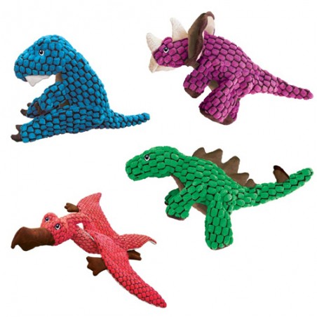 Le jeu constitue l'une des activités essentielles du chien ; il lui permet de se dépenser physiquement et de stimuler son intelligence. Les KONG Dynos Dynos, des jouets en peluche pour chien de couleurs vives en forme de tyrannosaure rex, stégosaure, tricératops ou ptérodactyle, présentent des textures variées qui sauront susciter l'intérêt de votre chien. Dotés d'une doublure renforcée, ces adorables jouets en peluche apporteront des moments de plaisir sans fin à votre compagnon. Les KONG Dynos produisent des couinements et des crépitements irrésistibles pour votre chien.