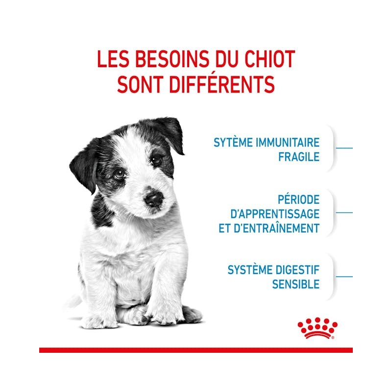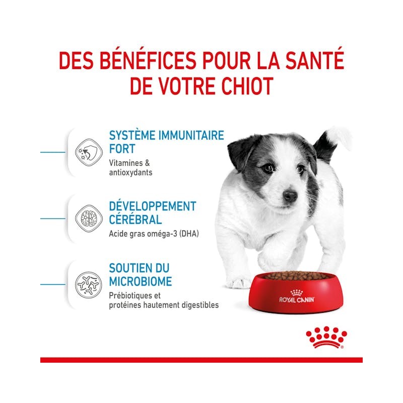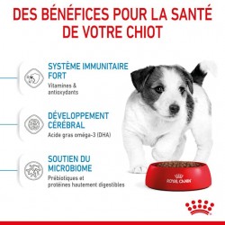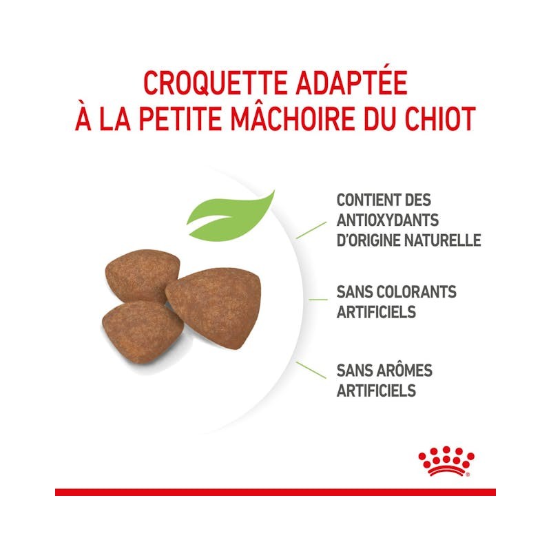 Les croquettes pour chien Royal Canin Mini Puppy sont particulièrement adaptées aux besoins spécifiques des chiens de petites races (1 à 10 kg) en pleine croissance à partir de 2 mois :