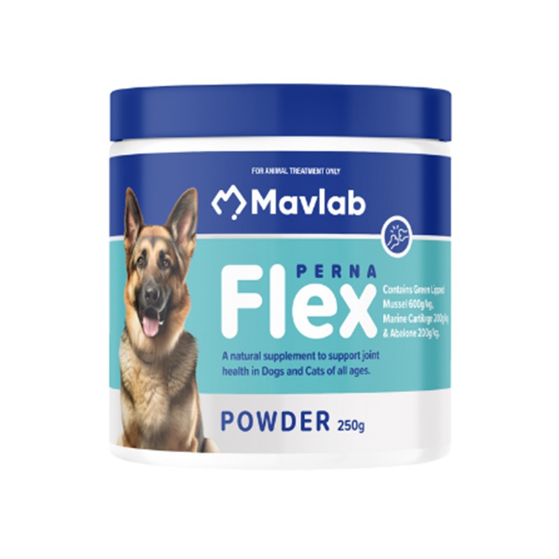 Mavlab PernaFlex est un complément alimentaire naturel pour la santé des articulations, conçu pour favoriser la mobilité et le bien-être général de vos animaux de compagnie. Cette poudre de haute qualité, sans conservateur, est formulée à partir de concentrés marins lyophilisés entièrement naturels, fournissant des nutriments essentiels qui favorisent la santé des articulations et des tissus conjonctifs chez les chiens et les chats.